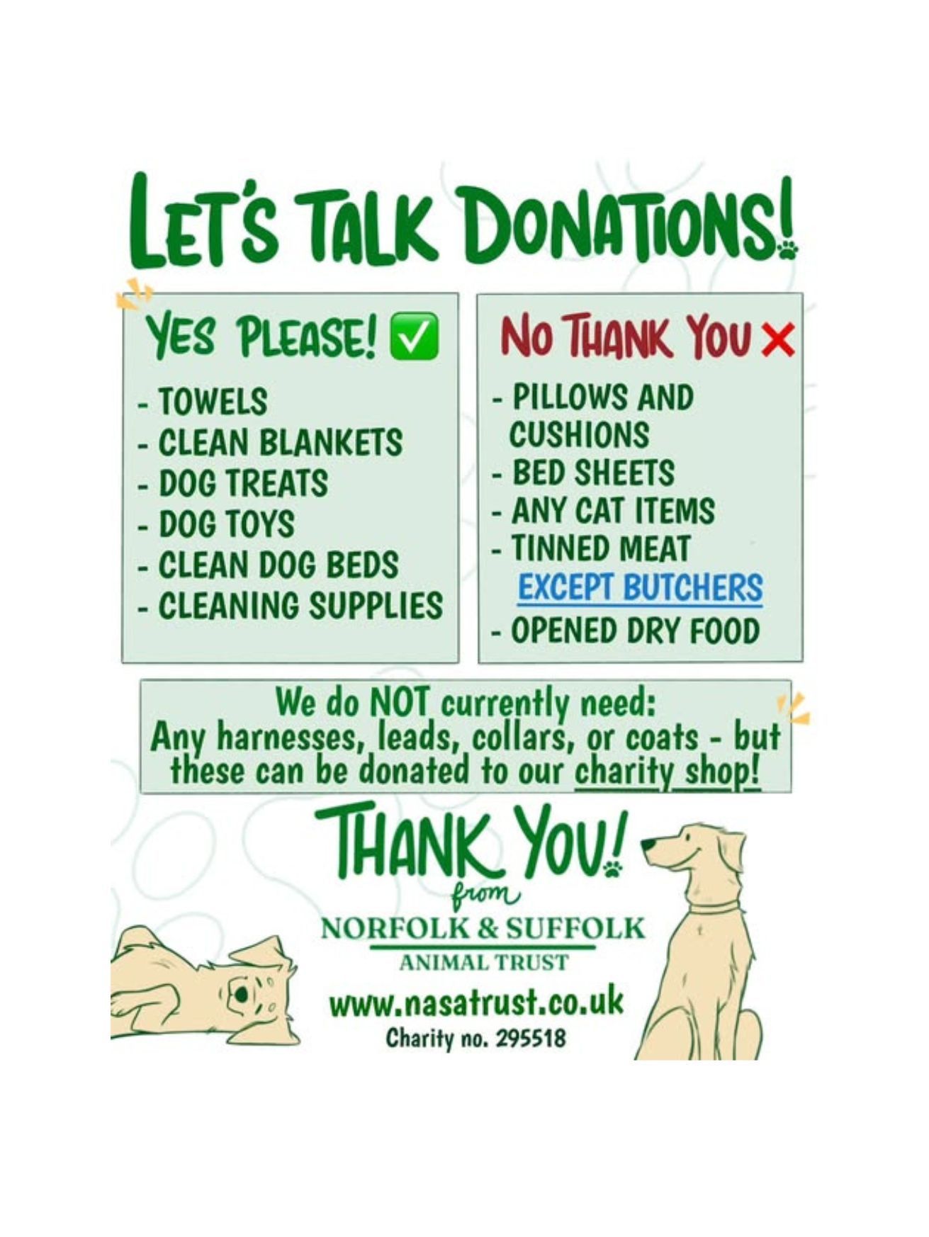 We appreciate every donation that comes our way, but unfortunately, due to space, workload, and the needs of the dogs, there are things we simply cannot take. If you would like to help us directly, please use our amazon Wishlist, PayPal, or come join our team!