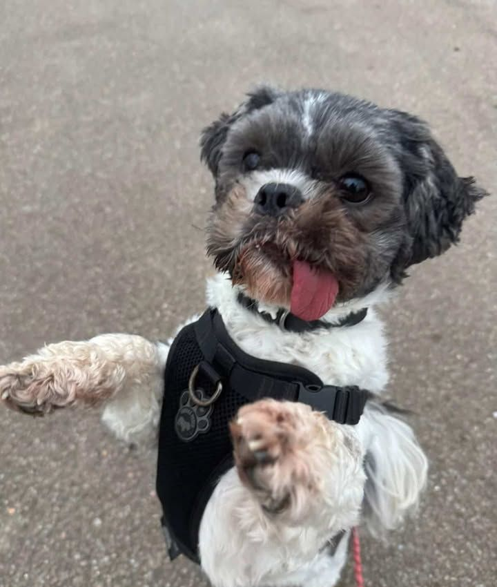 Don't let his floppy tongue fool you, this shit-zhu is only 3 years old! Barney is a bit nervous in his kennel but loves nothing more than to sit in your lap for a cuddle. We think Barney would benfit from being the only dog in the home as that is what he is familiar with