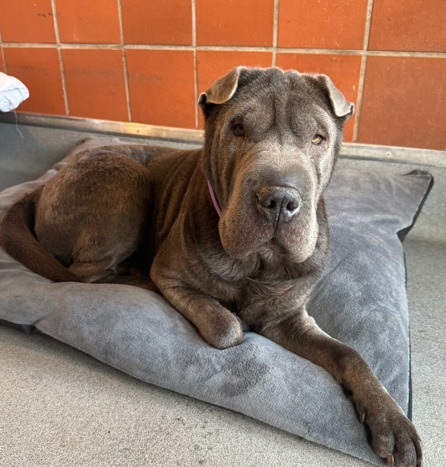 This 5 year old shar-pei has a lot to say about being left alone, she would much prefer some company and a nice long walk, she can be a little possessive of her toys but is doing very well
